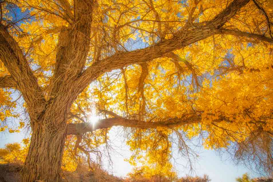 额济纳胡杨林——最为美丽壮观,知名度最高,究其原因有以下四点: