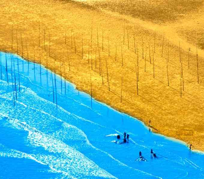自然的力量有多惊奇,大海与滩涂在赤、橙、黄、绿、青、蓝、紫各色调之间切换。